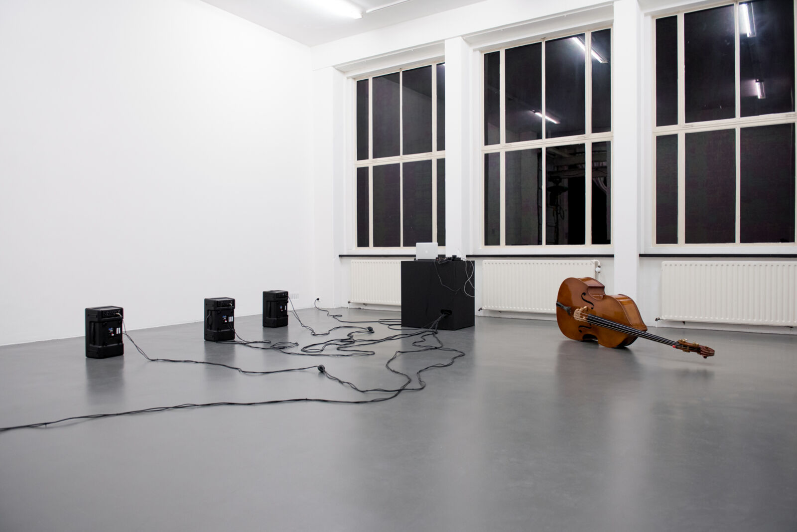 Even when the ensemble is not present or performing at all times, the Kunsthalle for Music keeps its doors open to the public. If you visit during these times, you may then encounter other kinds of activation of the gallery spaces. For example, ensemble members may be found using the space to rehearse or may have left a recorded trace in their absence. You may also find school groups learning and performing an especially commissioned score by Andre Heuvelman.