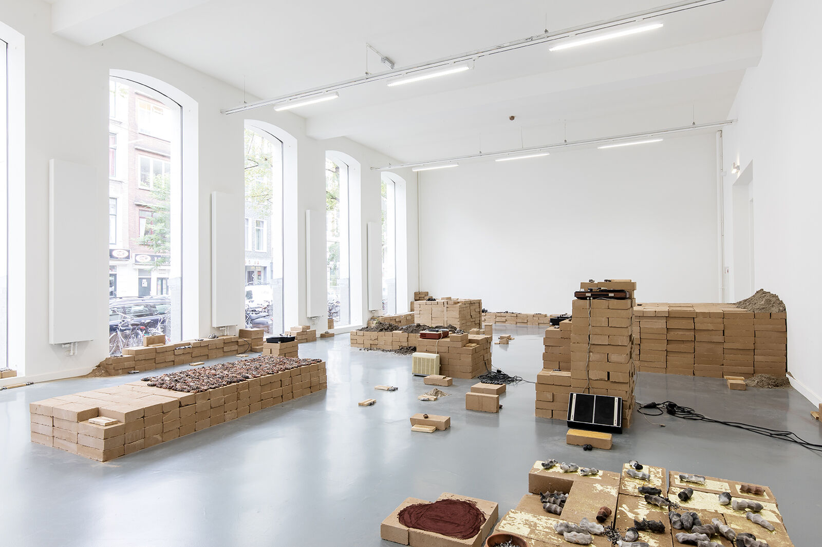 Bopape also draws from a story about Robert Sobukwe (1924-1978), a prominent South African political dissident, who founded the Pan Africanist Congress in opposition to apartheid. Upon the arrival of new prisoners at Robben Island, Subokwe – who was held in solitary confinement – had grabbed a hand full of soil, raised his fist, and saluted the new (political) prisoners. The final element within this work are the clay pieces, molded through a process of grabbing clay in one’s hand, forming it inside one’s fist - releasing it, letting it dry, and firing it till it’s hardened; these are tangible remnants of the exertion of energy, of agency, and the potential to ‘DO’.