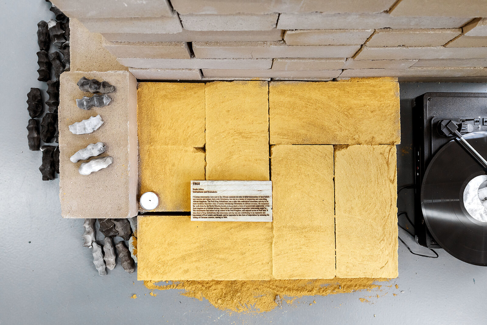 In her work, Southern African artist Dineo Seshee Bopape structures narratives through material and immaterial presences. For the eighth and final iteration of Para | Fictions, Bopape takes cues from author James Baldwin, who is known for his lyrical prose and writings on the complexity of social and psychological pressures of race, sexuality, and acceptance. Bopape presents an installation that meditates on pre-colonial recorded revolts and acts of resistance against European invasions in Africa.
