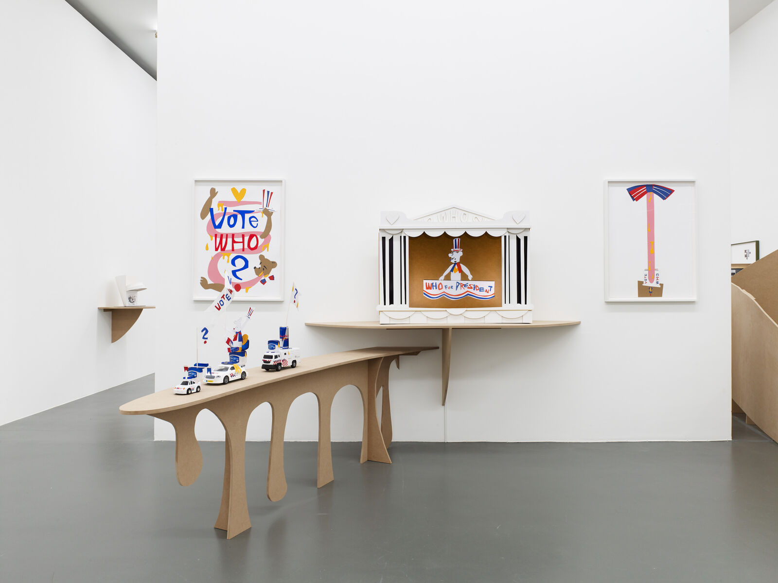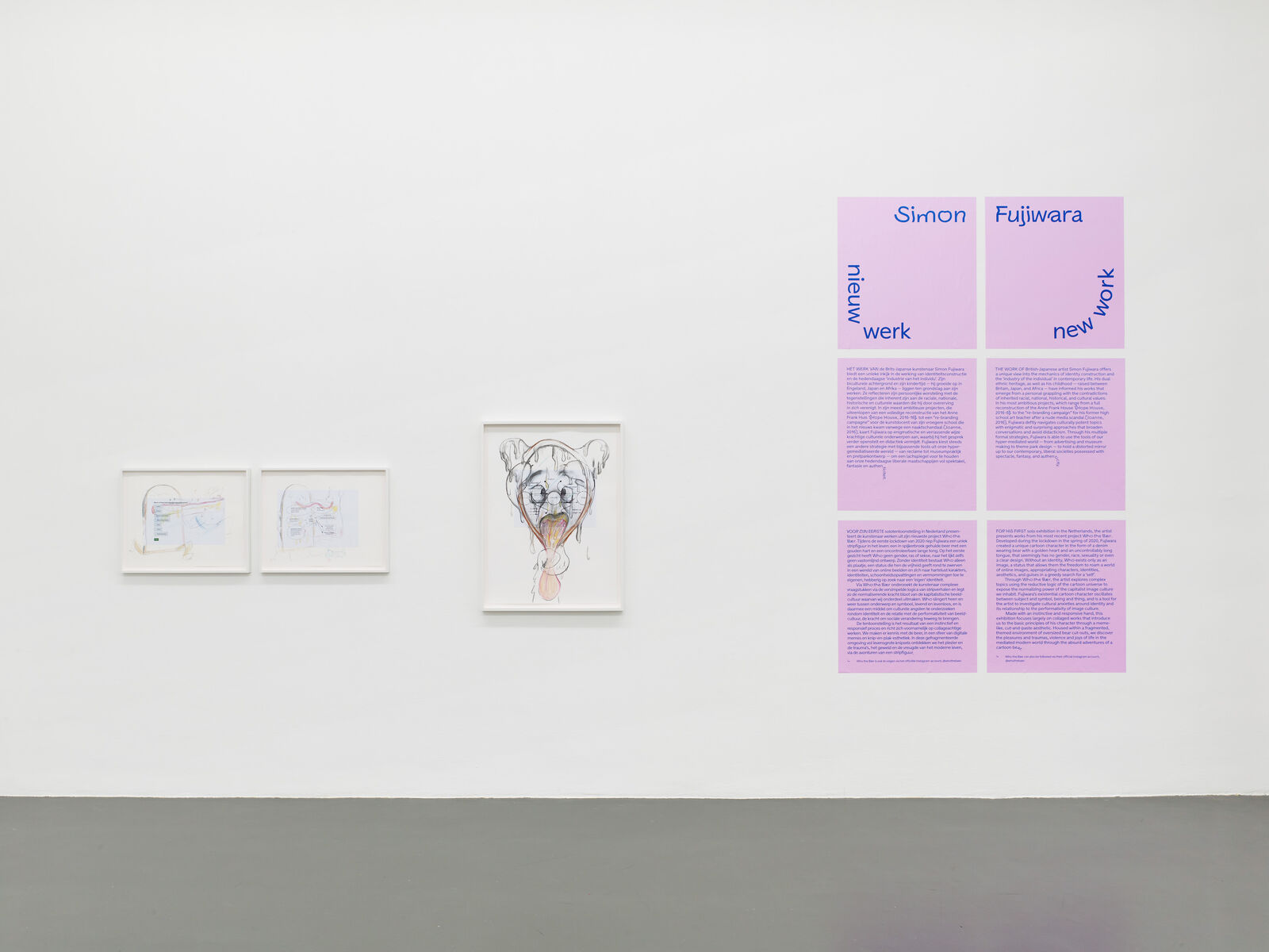 For his first solo exhibition in the Netherlands, artist Simon Fujiwara presents a large body of works on paper centered around his creation of an original cartoon character, Who the Bær. Fujiwara began drawing and collaging versions of his bear during the first 2020 lockdown in Berlin, developing the concept of a contemporary subject that exists as a ‘total image searching for a self in the world of images’. Who the Bær since developed into a large-scale project manifesting in drawings, collages, sculptures, animations and animatronics. Taking a cartoon subject as a simplified lens to look at image culture, Fujiwara’s absurdist creations reflect on the complex mechanisms of defining a self in an image-dominated world. For this exhibition, the artist returns to the origins of his project presenting a personal archive of over 100 drawings and ‘thinking works.’ Together, they show the various ways the artist uses Who as a cartoon avatar through which to explore the pleasures and traumas, violence and joys of life in the mediated modern world. Who the Bær can also be followed via their Instagram account @whothebaer.