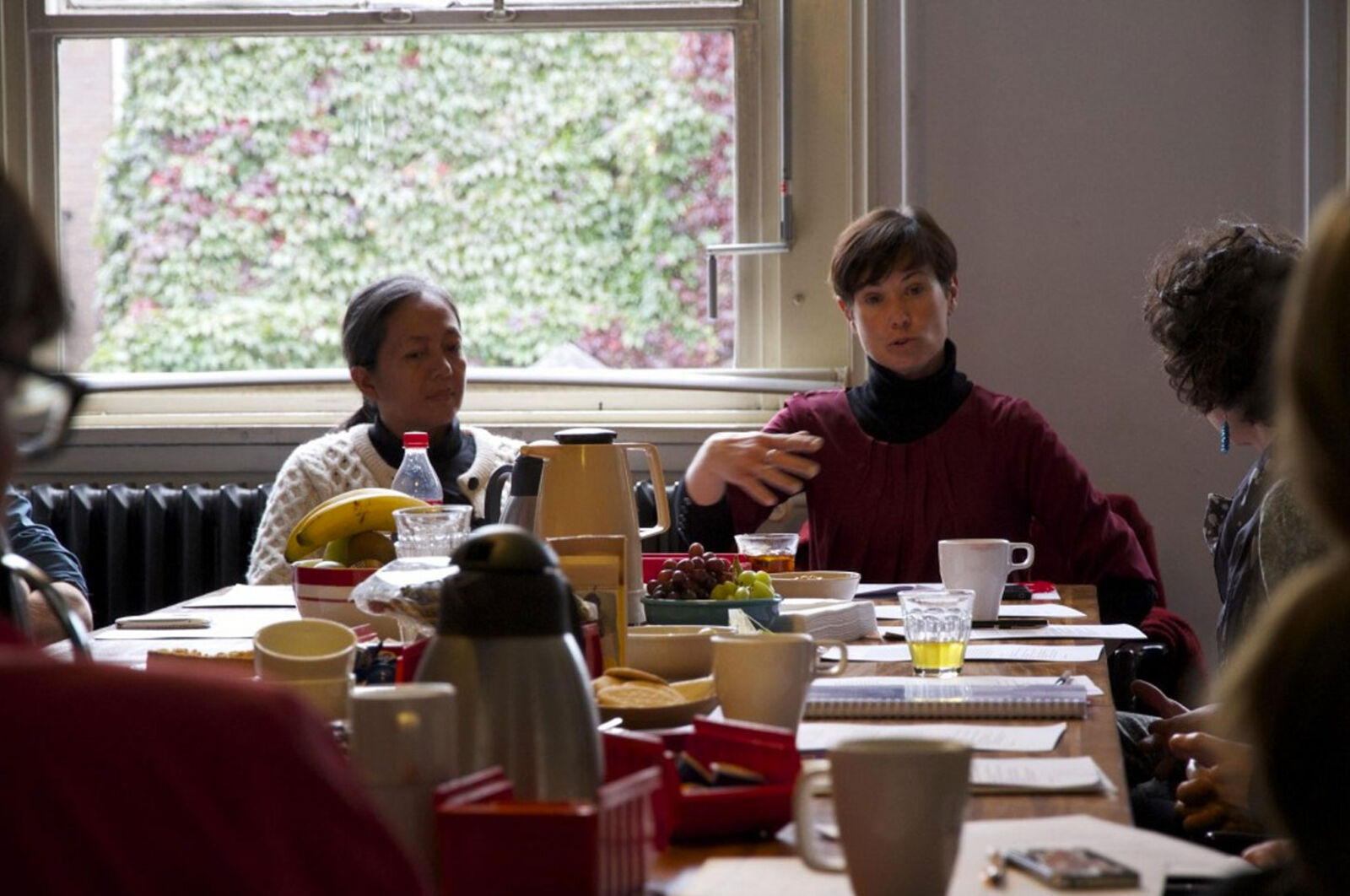 On Sunday October 6, Deirdre M. Donoghue (artist, Rotterdam) invited Arahmaiani (artist, Indonesia) to conduct a closed workshop session at Witte de With as the second installment of her long-term research project (m)other voices: the maternal as an attitude, maternal thinking and the production of time and knowledge. The aim of the project is to reflect on the maternal figure as a thinker and a producer of knowledge, rather than as a subject of representation and as a domestic figure inseparable from human emotions. It was launched in Copenhagen together with Witte de With, the artists collective Oda Projesi (TR) and Astrid Noack’s Ateliers (DK) in the summer of 2013 and will continue throughout the Fall at Witte de With and in Rotterdam.