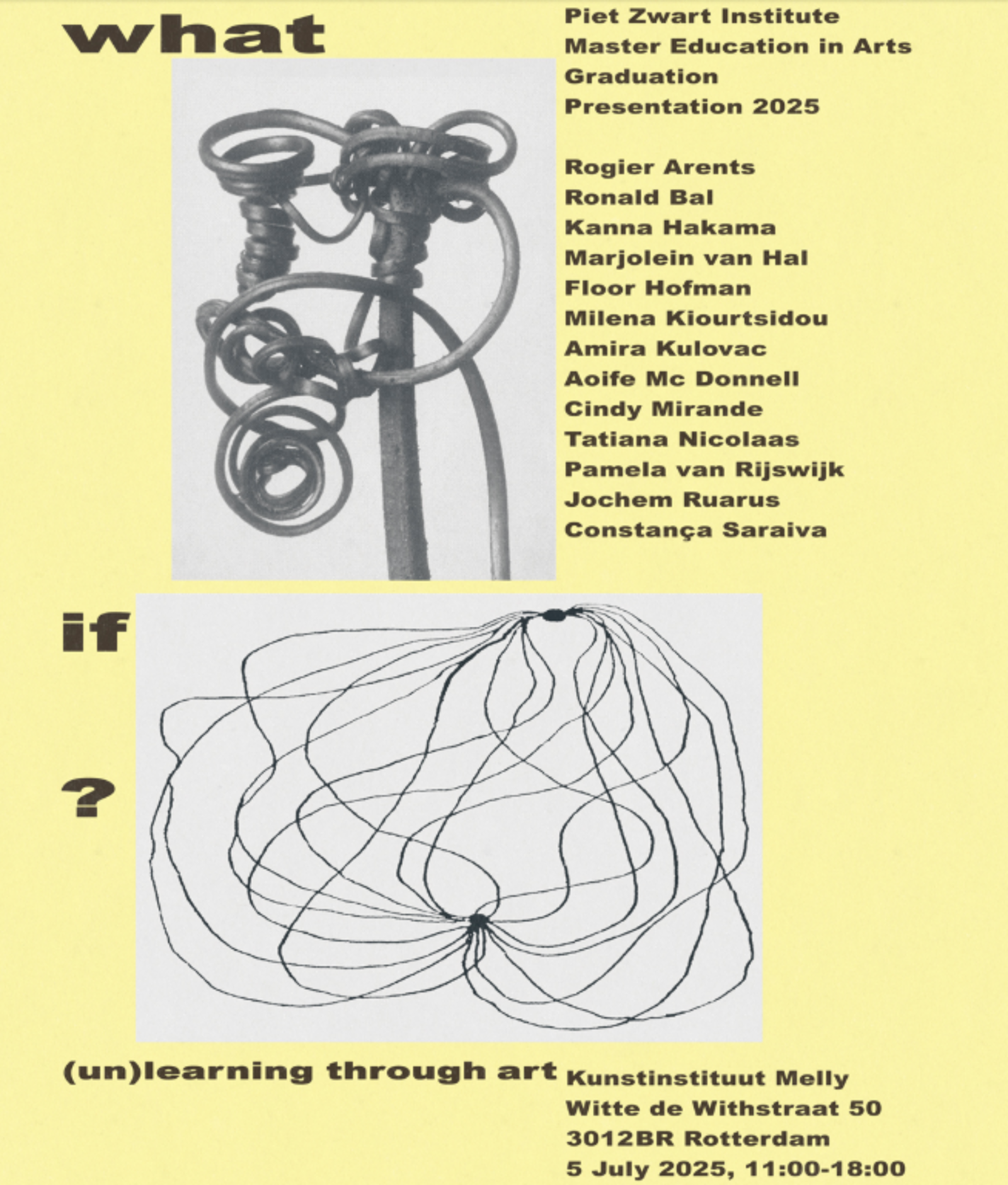 Join the graduating cohort of the Master Education in Arts on July 5 2025 at Kunstinstituut Melly for a day of public presentations, where you’ll experience their work and research through a variety of formats—from talks to performances.