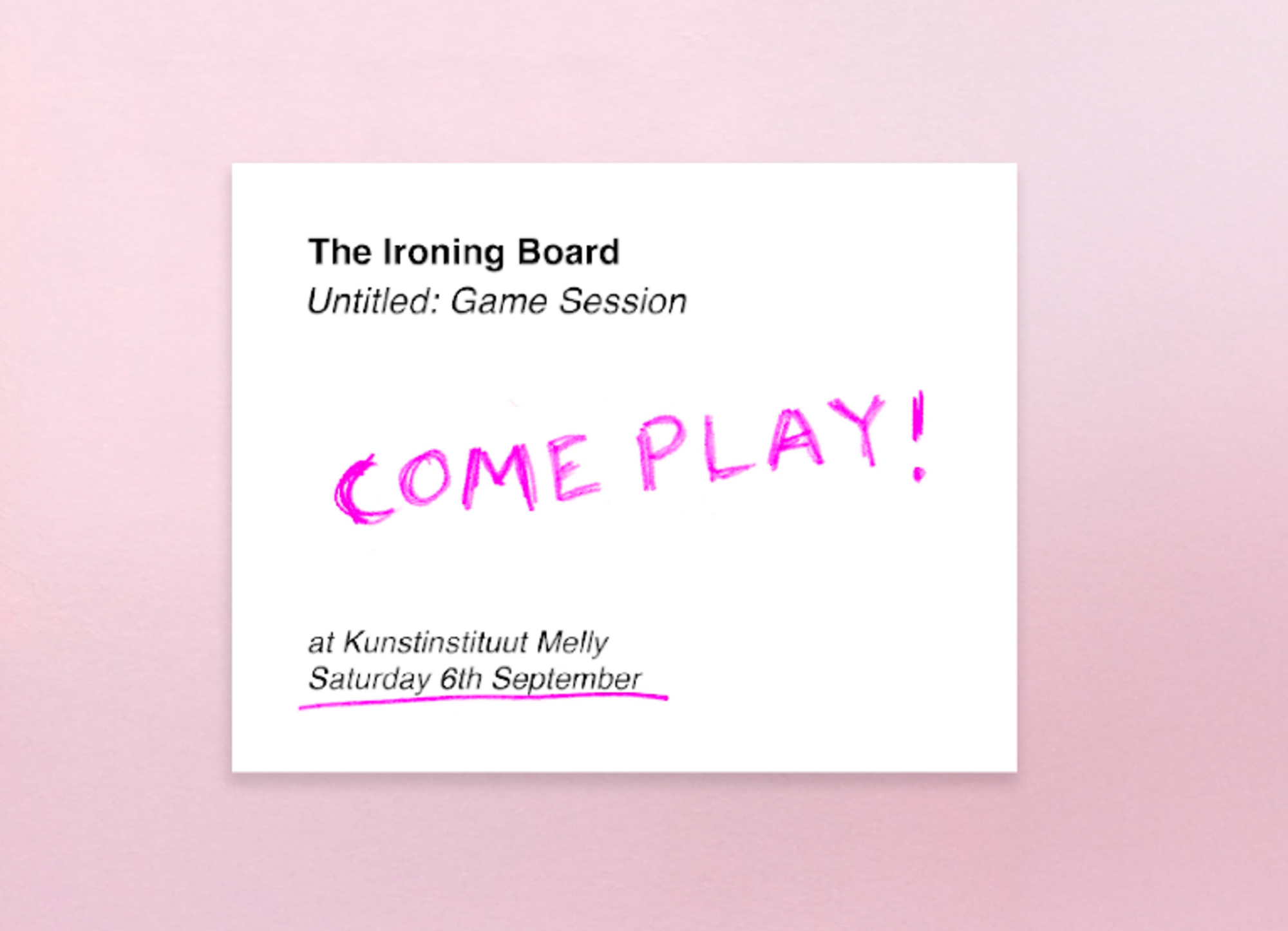 Kunstinstituut Melly and The Ironing Board invite you to a series of playful art-guessing games: kicking off Saturday, 6 September at 4 PM. Admission is free, but booking a ticket is required.