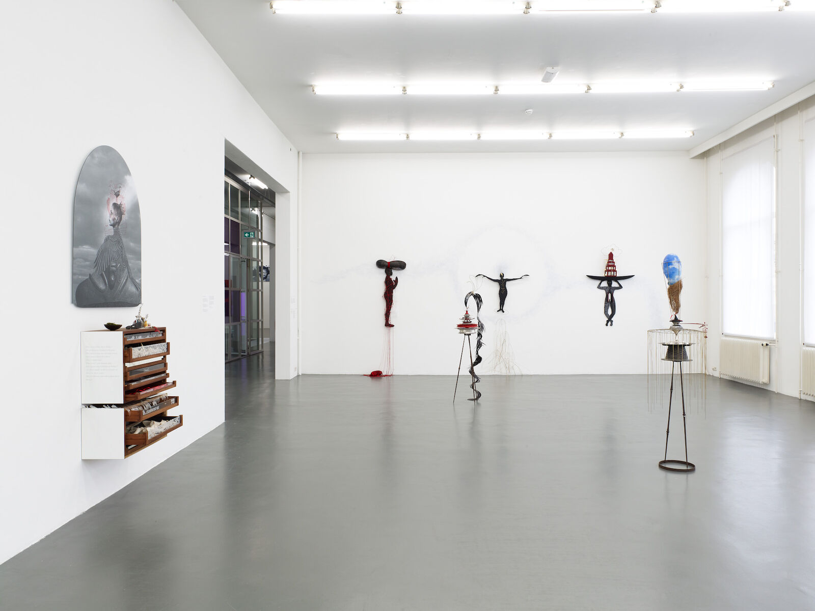 Jasmine Thomas-Girvan giet lyrische bronzen en zilveren figuren. Glas en metaal veranderen onder haar handen in delicate, welhaast automatisch opwellende lijntekeningen. Haar poëtische assemblages bevatten vaak antropomorfe karakters en verbeelden of bevatten natuurlijke materialen uit het Caraïbische landschap. Zaden, kalebassen, palmbladeren en veren, maar ook afvalschatten, aangespoeld op de stranden van de opwarmende Atlantische oceaan. De kunstenaar is geïnteresseerd in folklore en mythes, betwist verleden, vertelkunst en literatuur, en haar inspiratiebronnen lopen uiteen van carnavalsoptochten en Junkanoo-dans tot het werk van de gelauwerde Jamaicaanse dichter Olive Senior en de veelsoortige verhalen over Anansi, het bedriegende archetype dat door totslaafgemaakten via orale geschiedenis uit West Afrika naar de Caraïben werd gebracht.