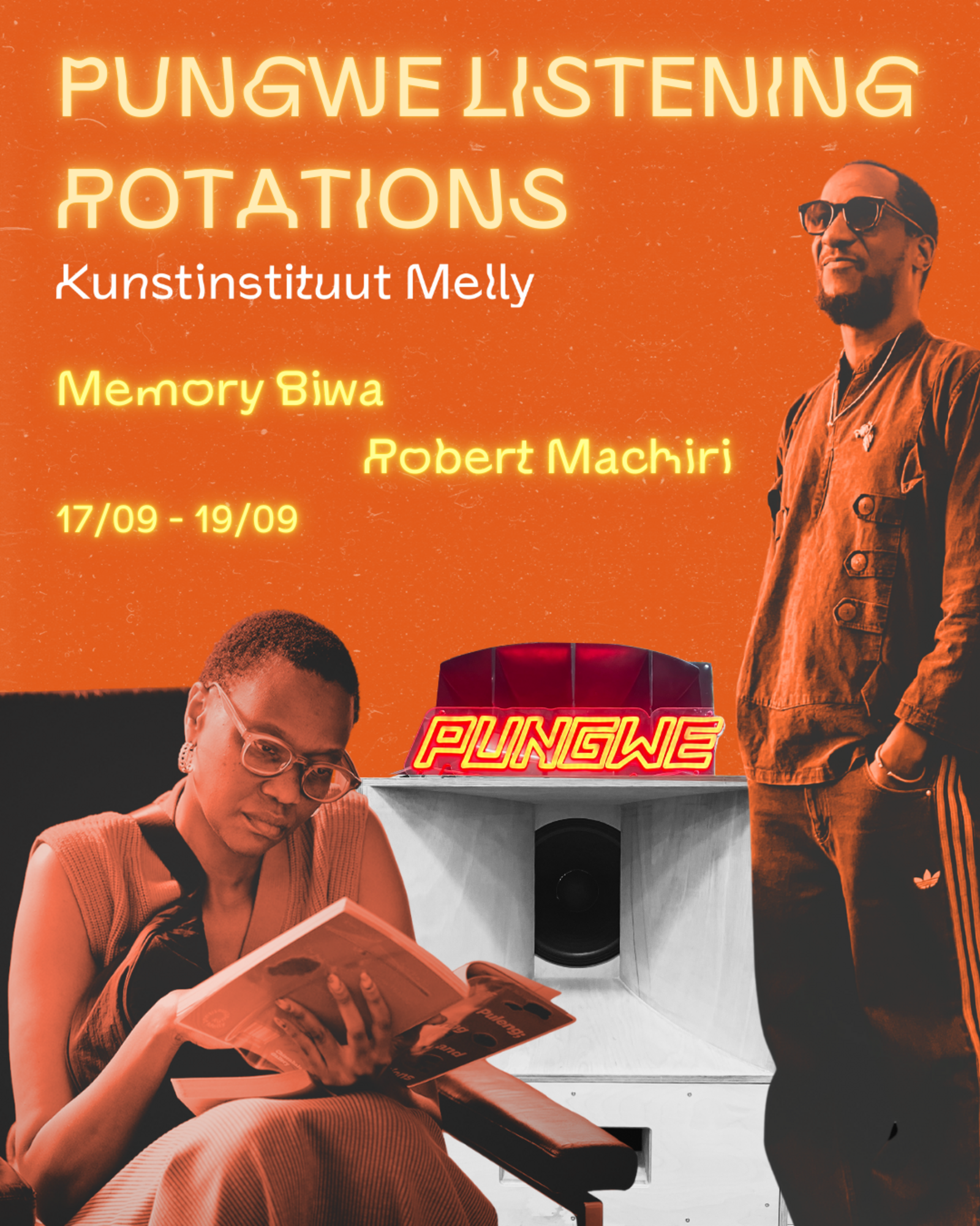 De Pungwe Listening Rotations bestaan uit open sessies die zijn gebaseerd op de call-and-response-tactieken van de pungwe: een term die in Zimbabwe wordt gebruikt om sociale bijeenkomsten die de hele nacht duren te beschrijven. Listening at Pungwe, opgericht in 2017, begon als een jamsessie van ideeën rond sonische herinneringen en de archieven van de Zuid-Afrikaanse geschiedenis. Deze sessies in Rotterdam bouwen voort op die traditie en bieden luisteren aan als een manier om toegang te krijgen tot alternatieve archieven: levend, gemeenschappelijk en spiritueel, voorbij de materiële taxonomie.