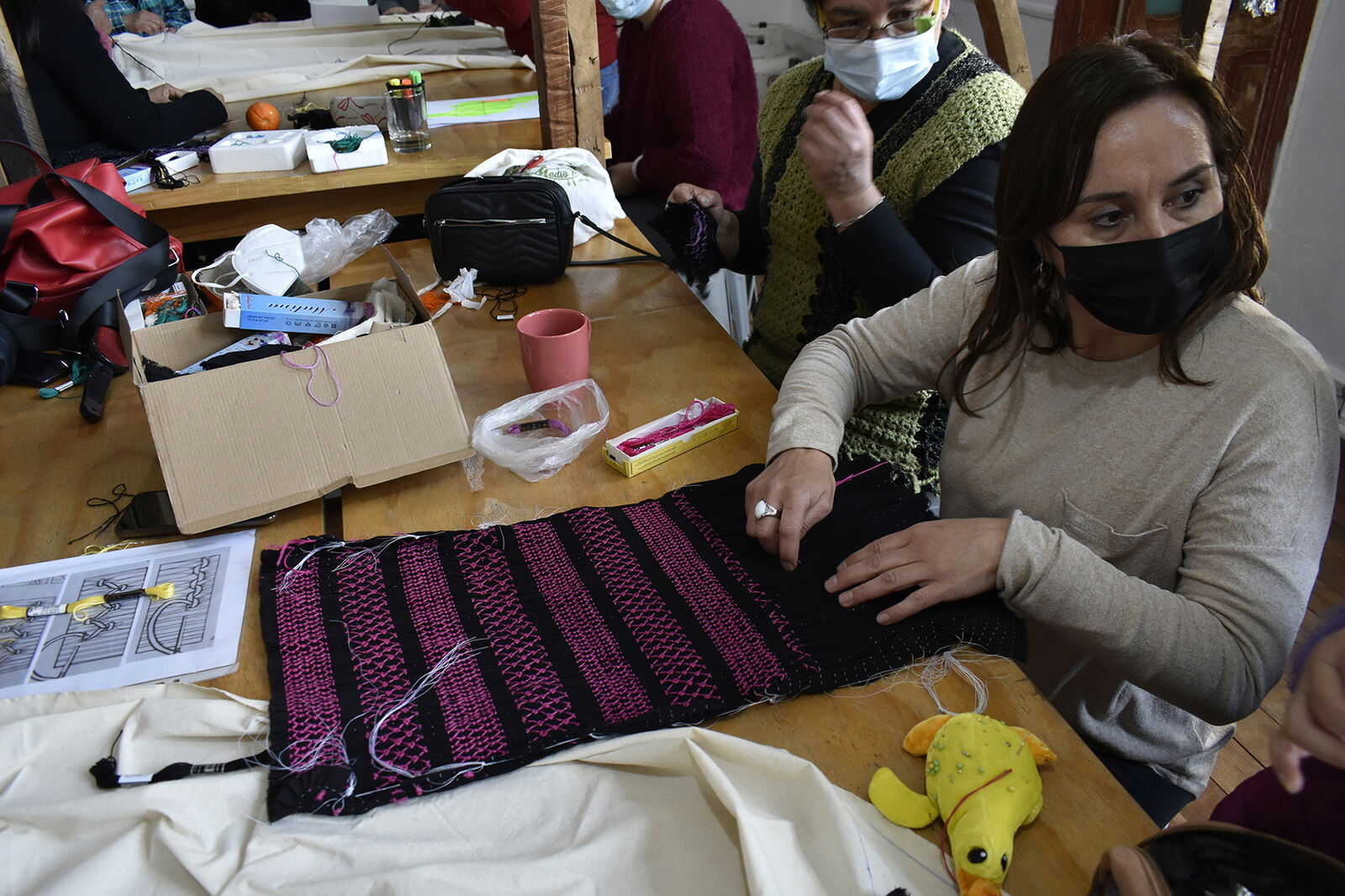 Tijdens de workshop werken de deelnemers met stoffen afkomstig van lokale textielrecyclingcentra en restmateriaal van stoffenwinkels. Samenwerking staat centraal: de deelnemers vertalen hun eigen ontwerpen naar textiel via patchwork, naaien en collectief borduren.
